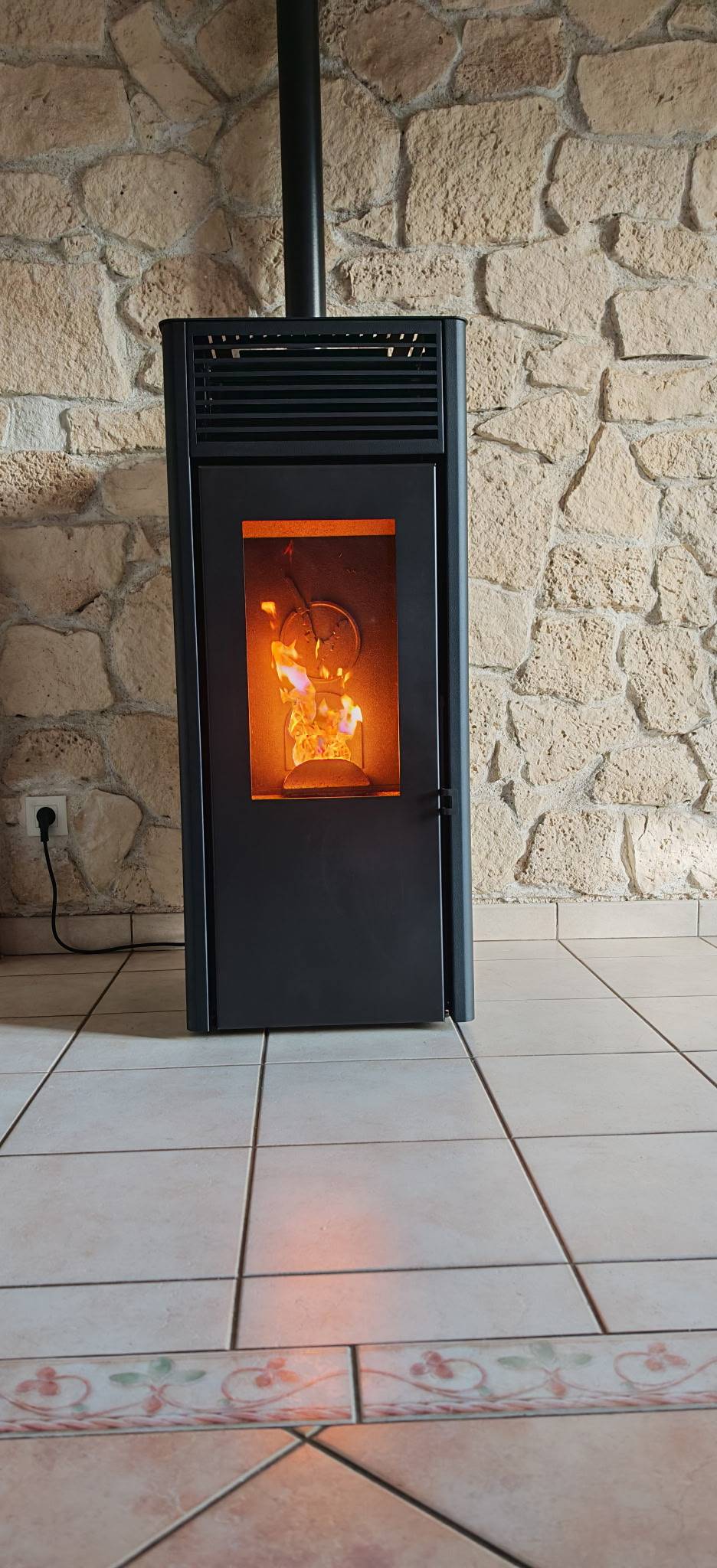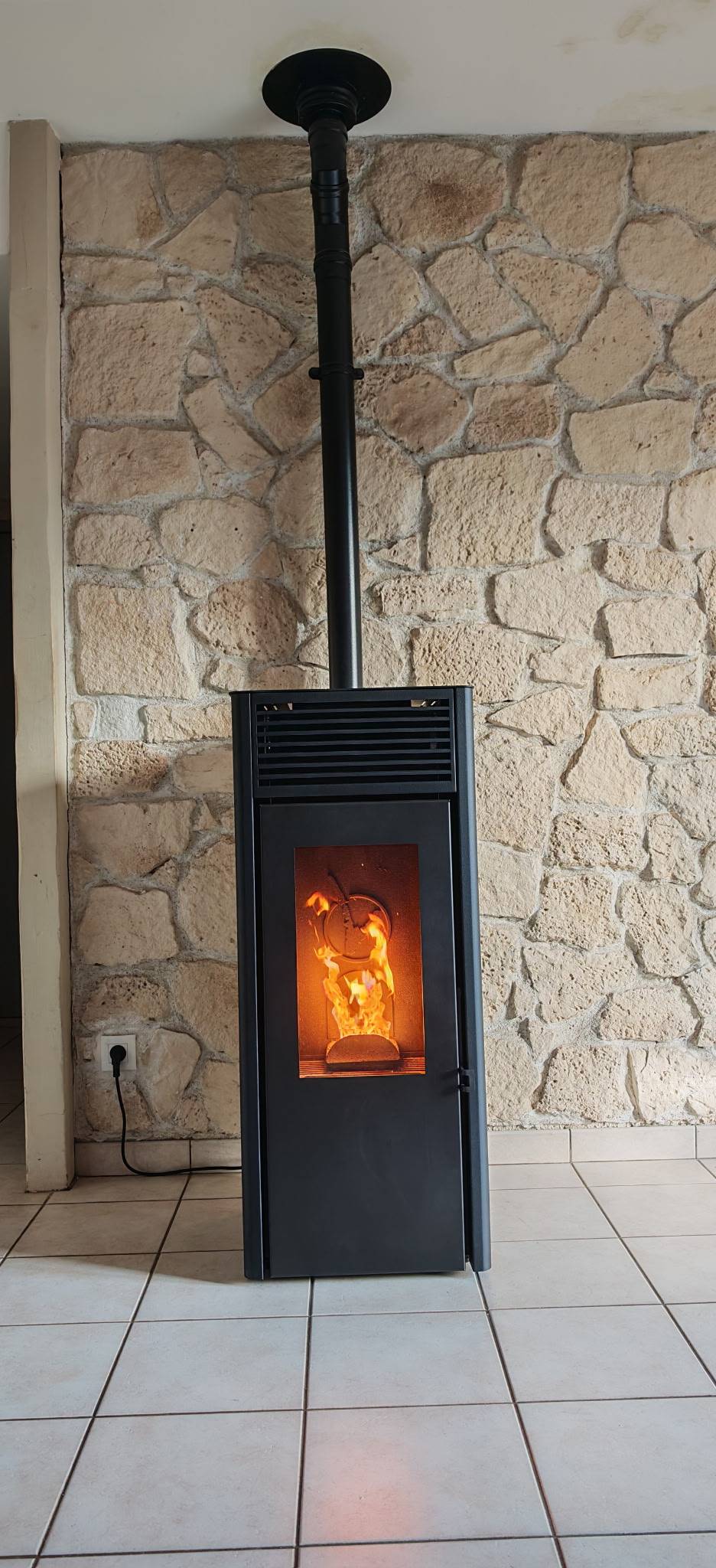 En lieu et place d’un ancien poêle à granulés, installation d'un nouveau poêle à granulés de bois Nola 7 de marque Invicta.