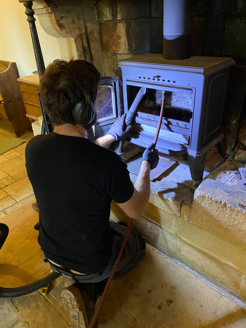 Ramonage et nettoyage du poêle bois bûches de marque invicta ainsi que du tubage du conduit de fumées.